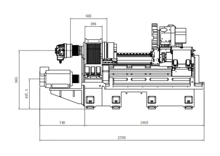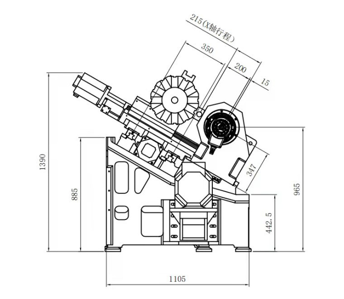 *整机采用30度倾斜式布局,床身采用HT300一体化高强度铸造.床身为管状中空结构,大大提高了机床在工作中的抗弯、抗扭刚度,同时经过两次时效处理,提高了机床的稳定性,高刚性及高稳定的床身为整机的高精度提供有力保证;